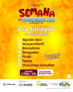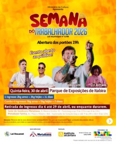 Tradicional na agenda local, a iniciativa celebra o Dia do Trabalhador e mantém o caráter solidário, com arrecadação de alimentos destinados a instituições assistenciais. A programação foi divulgada nesta segunda-feira (30) na sede administrativa do Sindicato Metabase, realizador do evento com apoio do Instituto Alcântara, financiamento em renúncia fiscal pela Lei Rouanet e patrocínio da iniciativa privada.