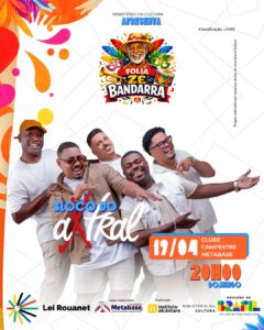 A programação será realizada entre os dias 16 e 19 de abril, no Clube do Sindicato Metabase. Inspirada na trajetória de Zé Bandarra, figura tradicional da cultura local, a folia reúne atrações musicais, blocos carnavalescos e ações voltadas à valorização das manifestações populares, com foco na inclusão e no acesso democrático à cultura. A abertura do evento ocorre na quinta-feira (16), a partir das 19h.